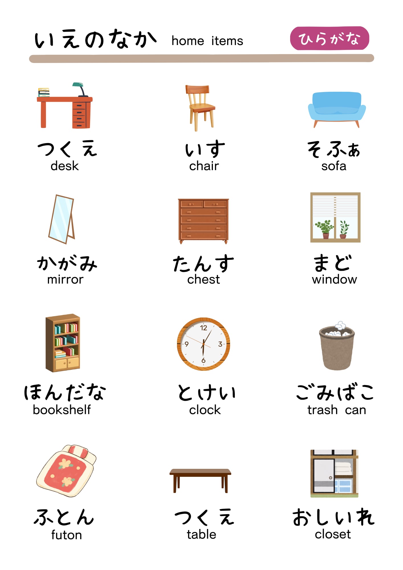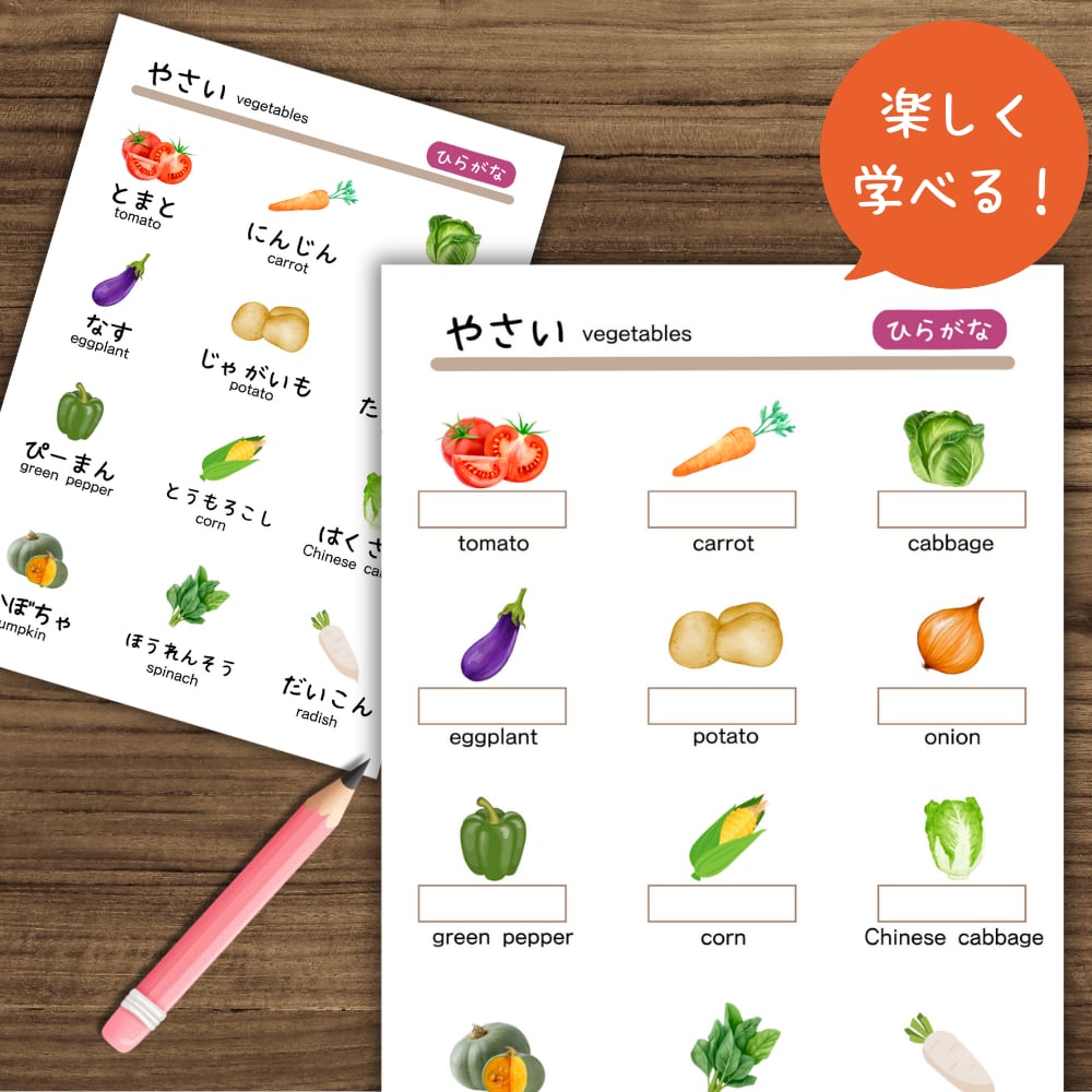 こちらのキッズワークシートを使用して、物の名前を楽しく学んでみてくださいね!