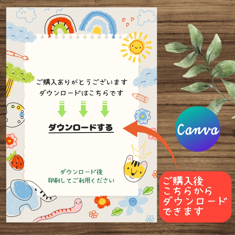 Canvaで編集も可能。A4サイズ。プリンタ等で印刷してご使用ください。