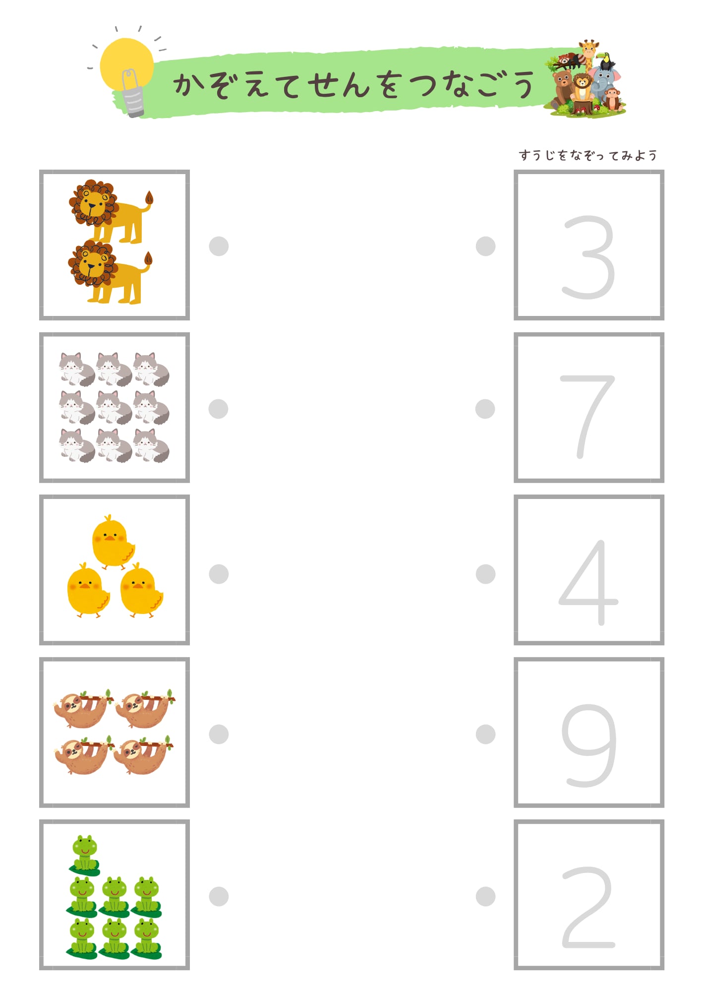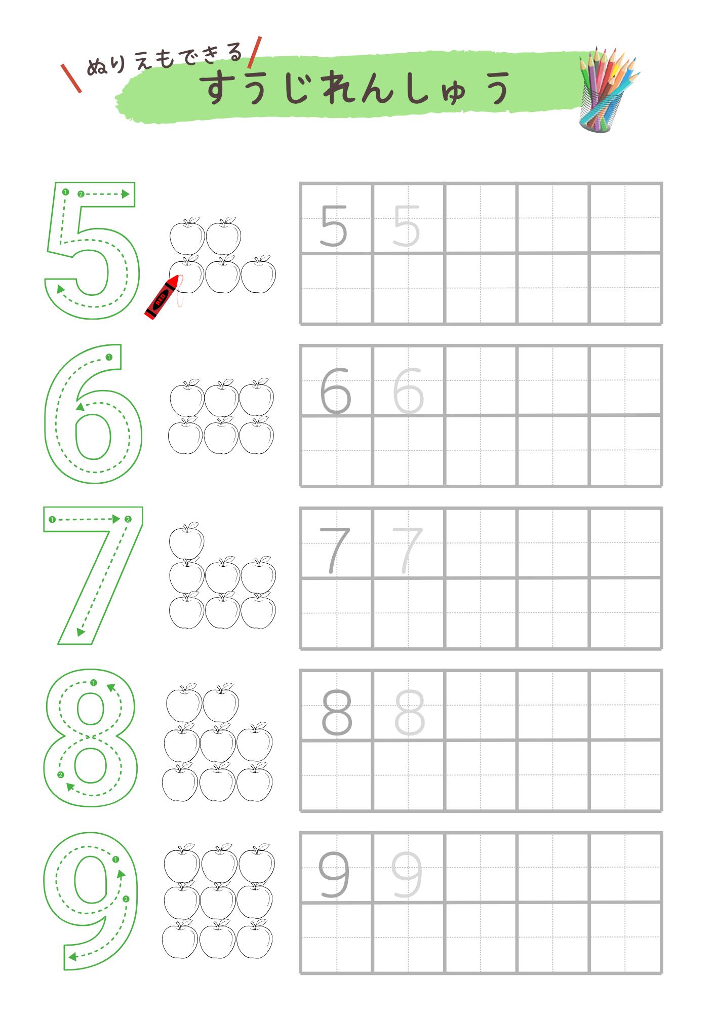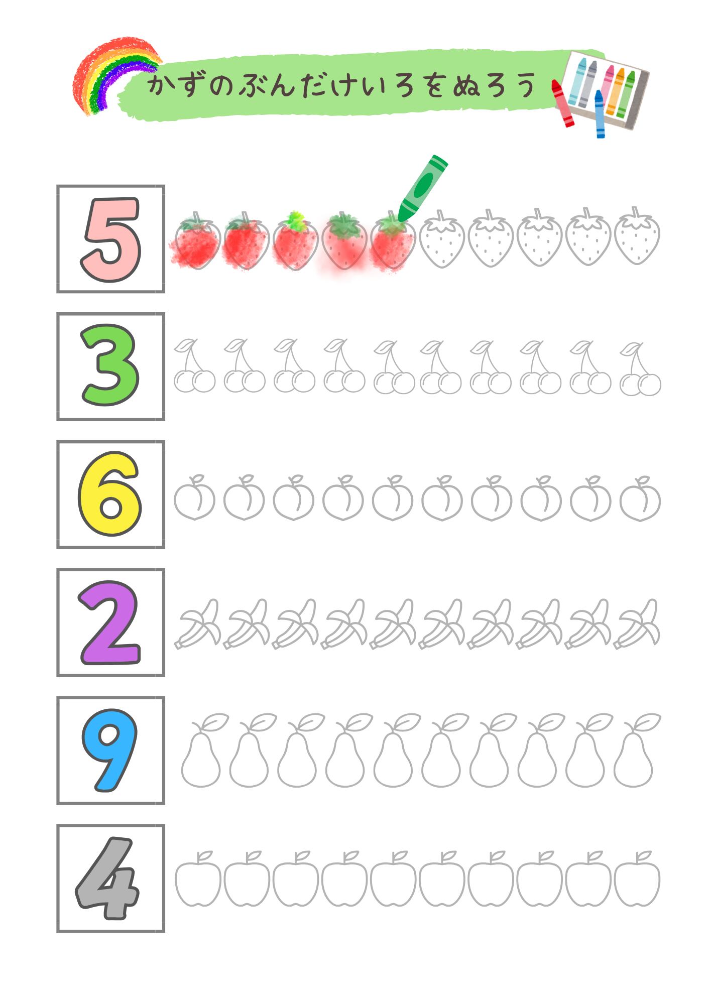 こちらのキッズワークシートを使用して、楽しみながら数字を学んでみてくださいね!