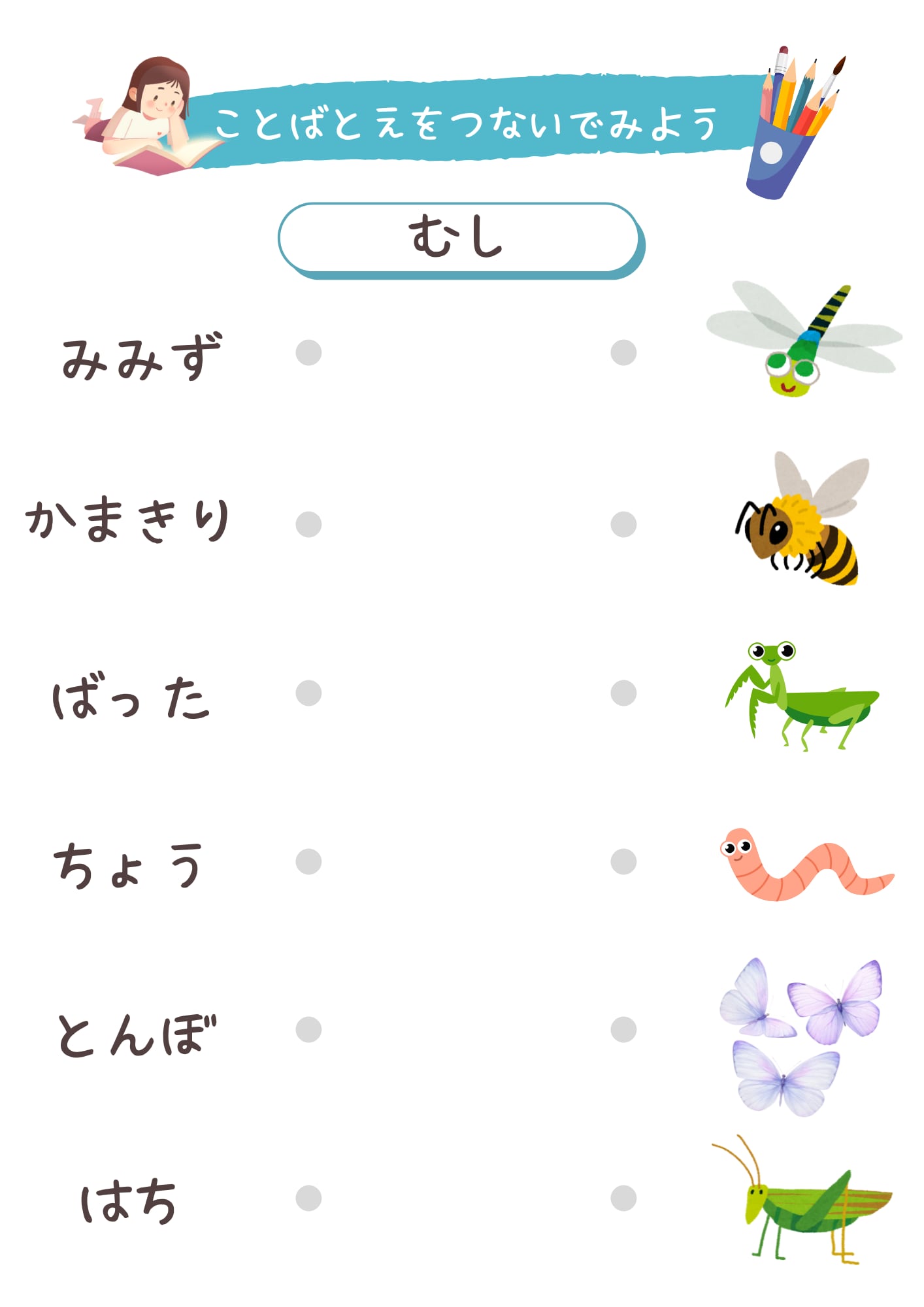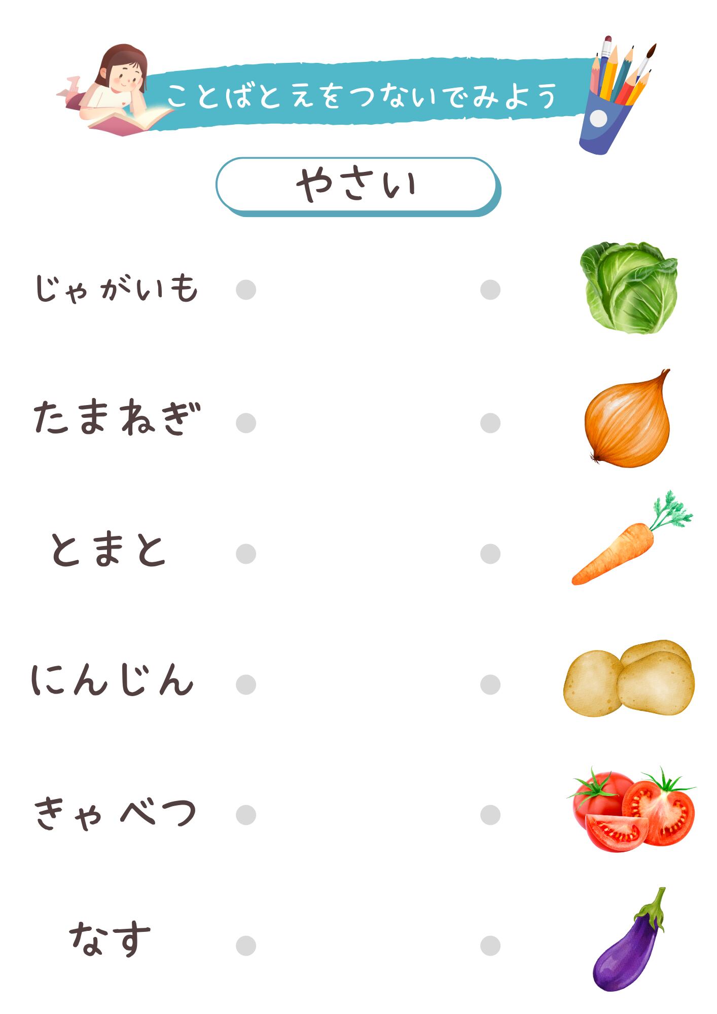 こちらのマッチングワークシートを使用して、楽しみながら言葉を学んでみてくださいね!