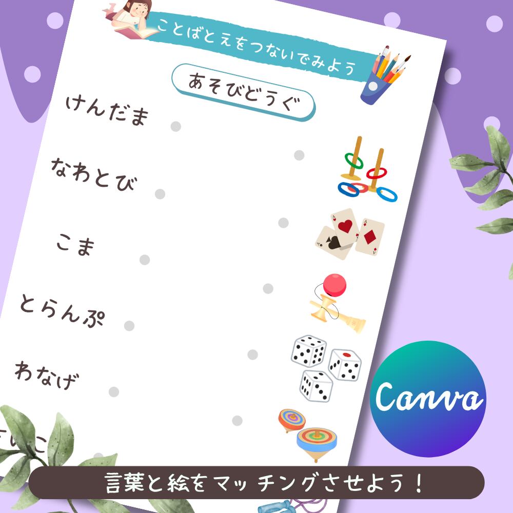 Canvaを使って自由にカスタマイズできるテンプレートになっているので、お子様の興味や学びに合わせたデザインに編集も可能です。楽しいイラストと一緒に言葉を学ぶことができるため、学習がより魅力的になります!