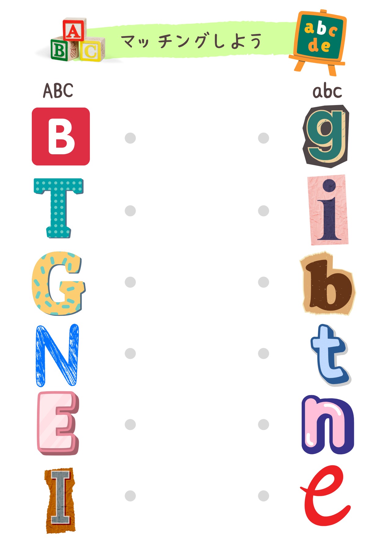 こちらのキッズワークを使用して、楽しみながらアルファベットを学んでみてくださいね!