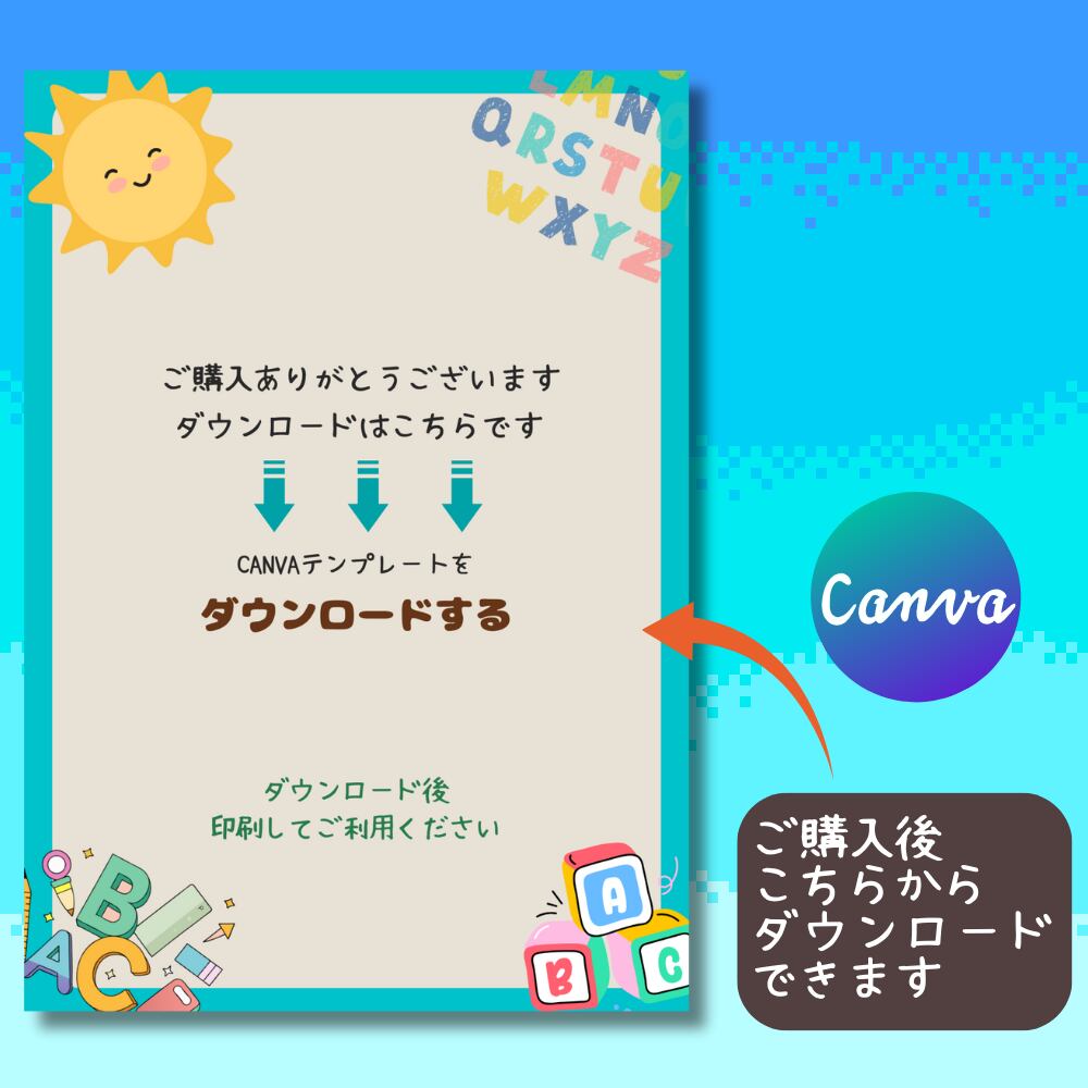 この製品は即時ダウンロードが可能です。物理的な商品は発送されません。お支払いが処理されると、すぐにファイルをダウンロードできます。Canvaで編集も可能。A4サイズ。プリンタ等で印刷してご使用ください。